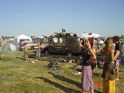 Habe ja gerade gemerkt,daß es schon wieder ein wenig her ist seit meinem letztem Eintrag.Na ja wenig Zeit zur Zeit.Also was ist passiert?Ne Menge.Also zum ersten ist der Traum leider ausgeträumt,na und...Wir sind wieder wer!!!Es macht wieder Spaß deutscher Fußballfan zu sein.54,74,1990 und 2010...South Africa,Germany is coming...Ja und sonst???Haben die Fusion hinter uns gebracht.Und wir leben noch!!!War unwahrscheinlich anstrengend aber einfach nur geil.Es hat gerockt,bis ja bis zum Sonntag.Dann hats gebrannt.Siehe Foto.Und das direkt neben unserem Domizil.Ne Menge Glück gehabt.Jetzt werden wa uns langsam auf die Dinge vorbereiten die kommen.Als nächstes ist Antaris an der Reihe...Obwohl am 15.07.auch Parade ist!Und immer wenn Parade ist gibts geile Mucke in the Town!Habe schon mal ganz kurz geschaut und bin irgendwie schon richtig aufgeregt!!!Takkyo Ishino,Blake Baxter und Joey Beltram auf einer Session...Kann man eigentlich nicht sausen lassen.Wir lassen uns überraschen wo uns der Wind hintreibt...Also bis die Tage...